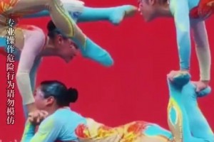 三姐妹上台表演杂技,惊险动作一环接一环扣人心弦