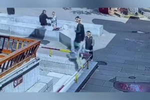 陌生人拿起车筐里的水就喝,不知情的男子口渴直接对口喝了