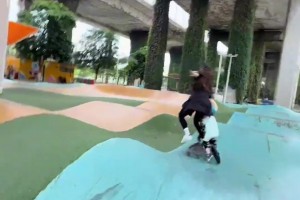 小孩骑平衡车突然拐弯,女子玩滑板来不及躲避直接撞上去